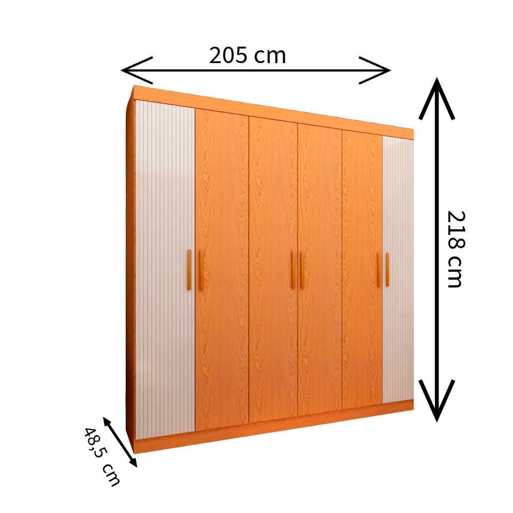Conteúdo da Embalagem: -Guarda-Roupa Casal Genialflex Palermo, 6 Portas, 2 Gavetas e 4 Prateleiras 205cm de largura – Cinamomo/White Laca Detalhe Frisado;
