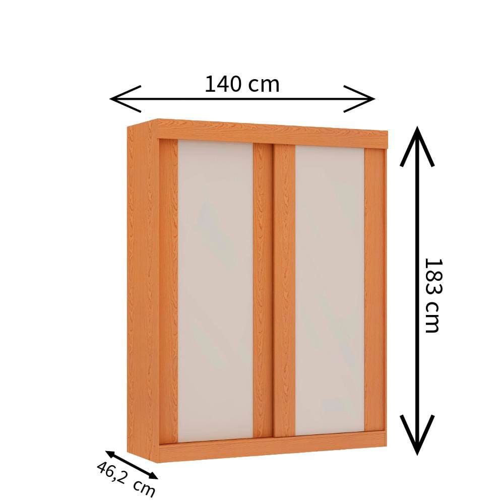 Conteúdo da Embalagem: -1 Guarda-Roupa Solteiro Genialflex Toledo com 2 Portas de Correr, 2 Gavetas, 3 Prateleiras e 140cm de largura - Cinamomo/Off White ou Fendi;
