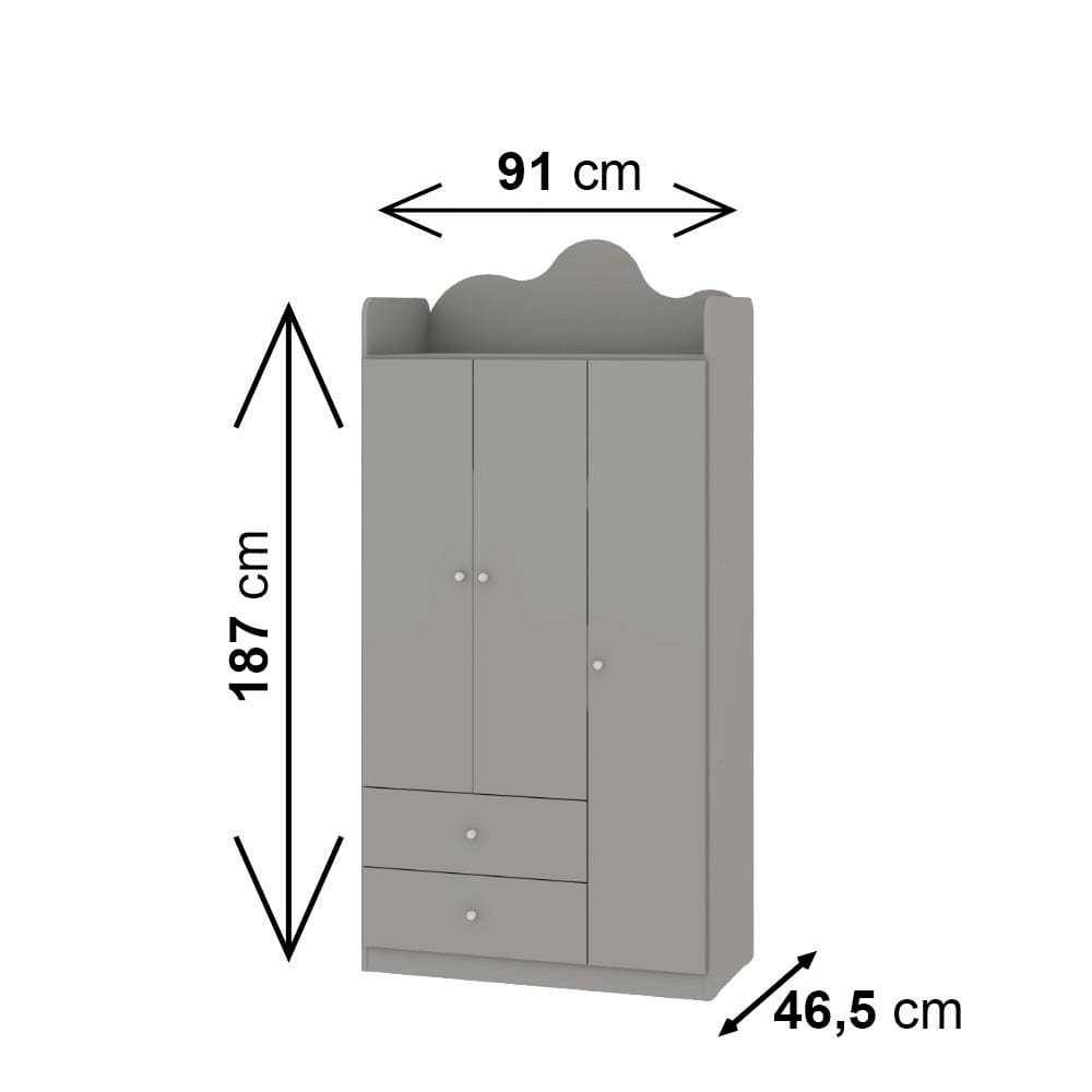 Guarda-Roupa Infantil Genialflex Nuvem com 3 Portas, 2 Gavetas, 3 Prateleiras e 91cm de largura - Fendi