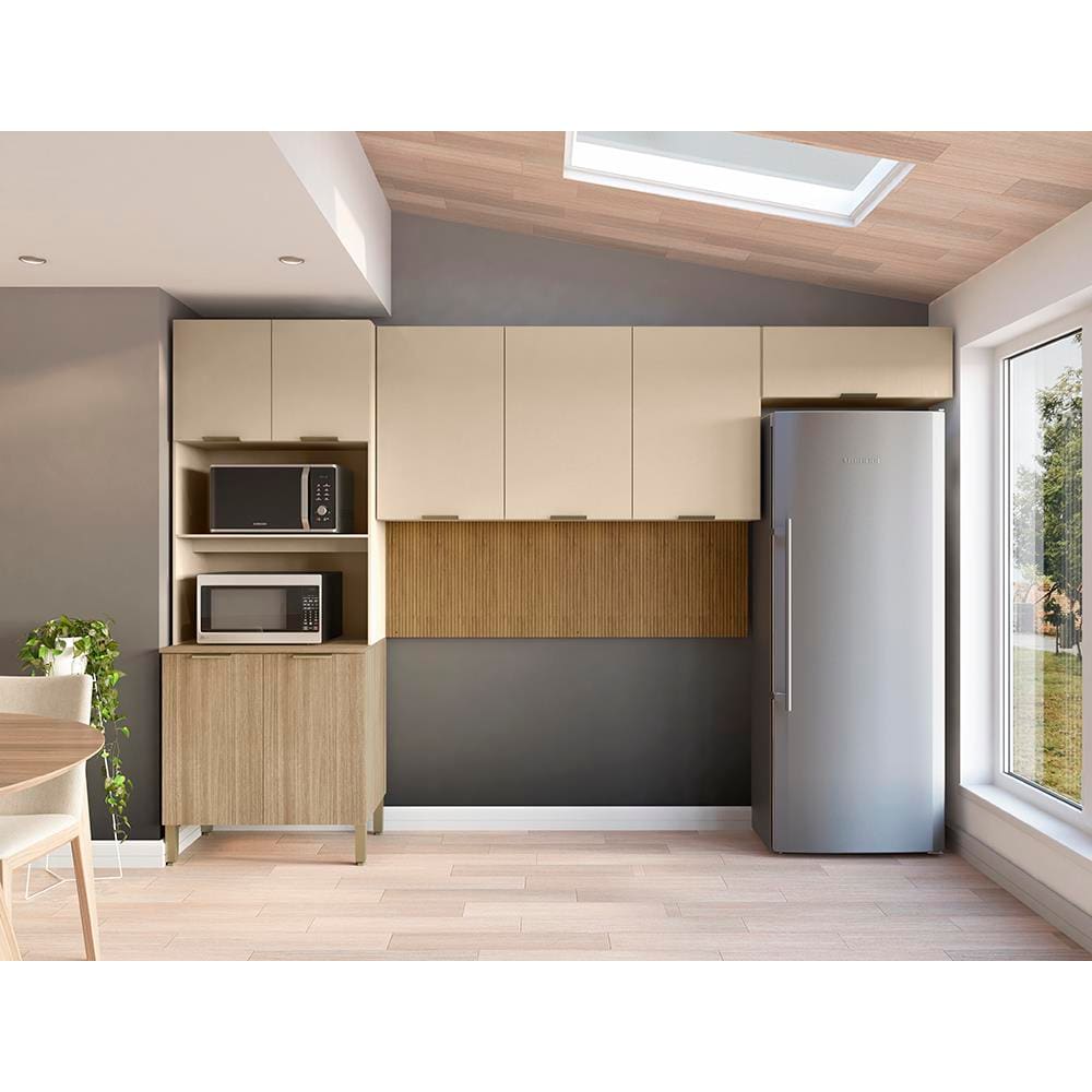 Se você precisa espaço nos armários de cozinha, conheça a Cozinha Compacta Glam da Kits Paraná que une estilo, funcionalidade e acabamento de alto padrão. Composta por 8 portas, incluindo basculantes com suporte a gás, ela se destaca pelo design moderno e diferenciado.