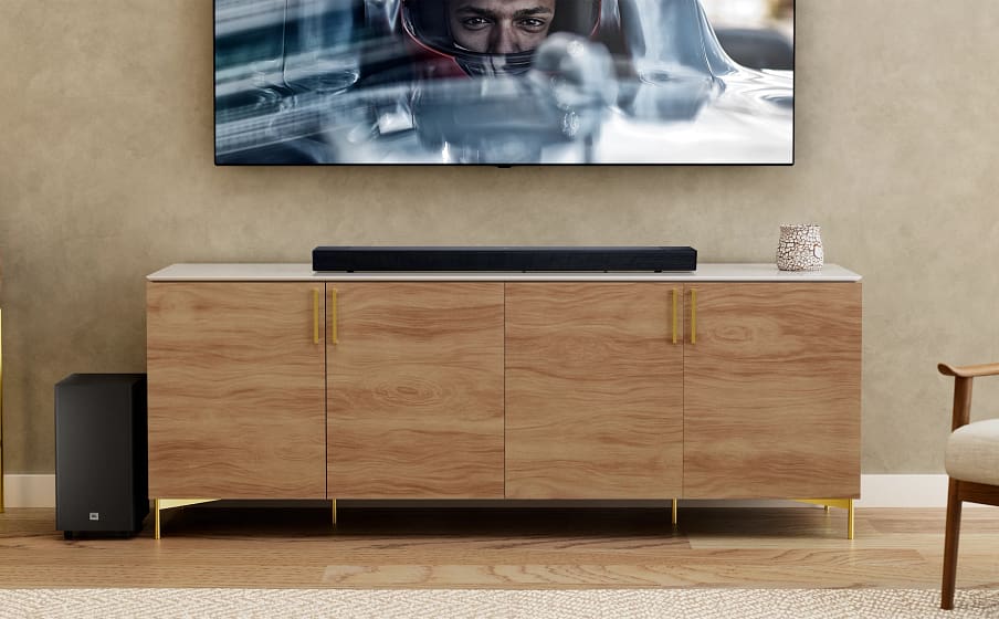Desfrute de diálogos cristalinos graças ao driver de canal central dedicado e conecte-se facilmente com HDMI eARC e Bluetooth 5.4. Quando a TV estiver desligada, reproduza suas músicas e podcasts favoritos diretamente do smartphone, com qualidade JBL.