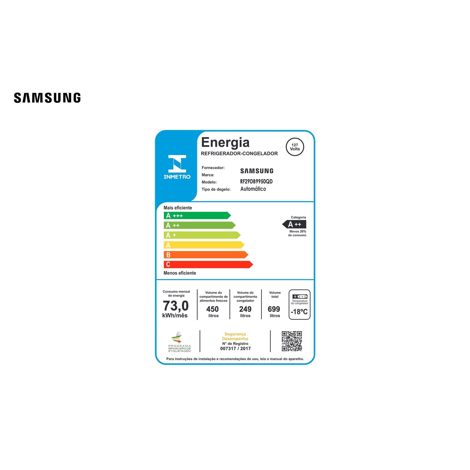 Com classificação energética A++, a geladeira é econômica e sustentável. E para sua tranquilidade, oferece 20 anos de garantia no compressor Digital Inverter™.