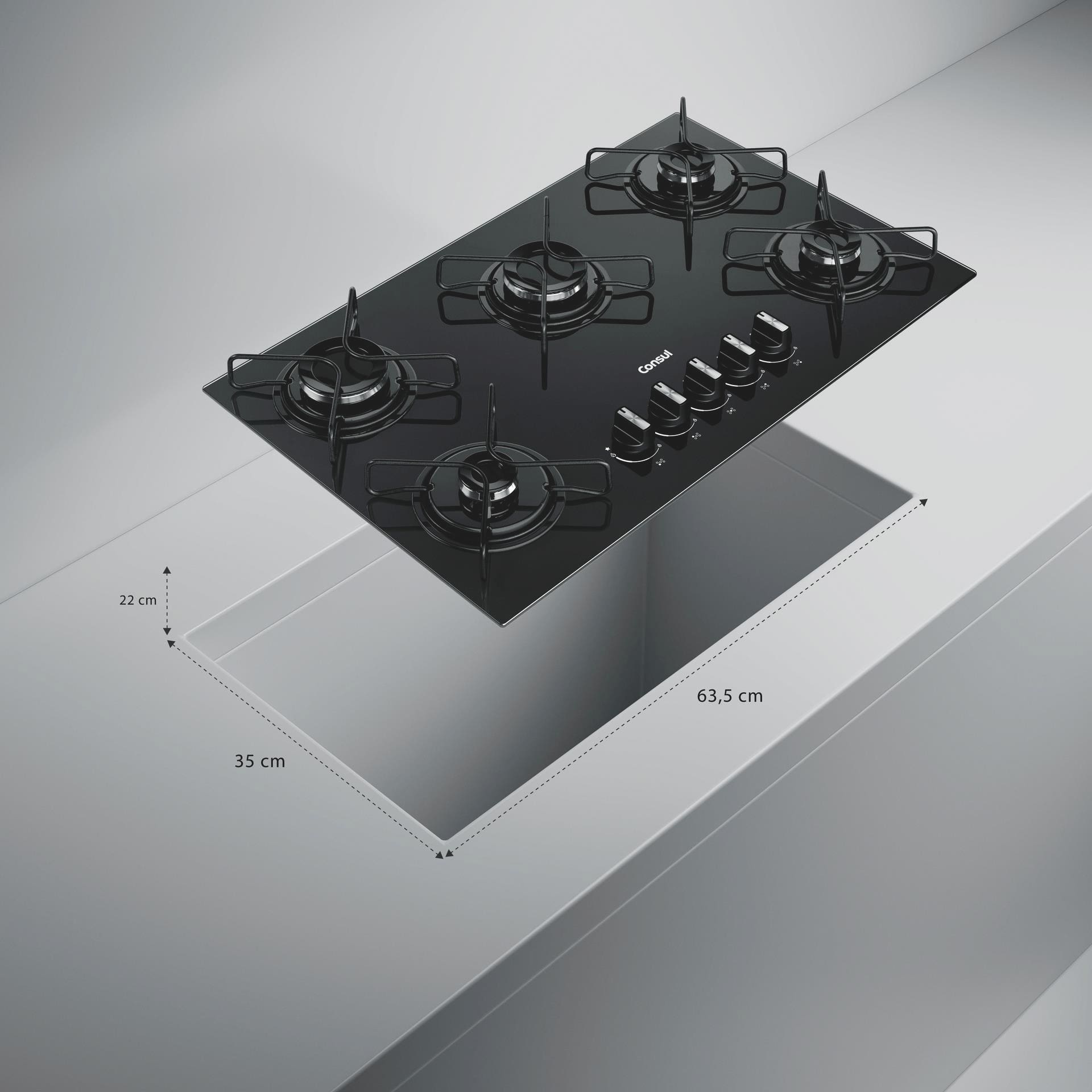 Cooktop 5 Bocas Consul CD075BE Mesa de Vidro Grade de Aço Ferro Aramado Bivolt Preto