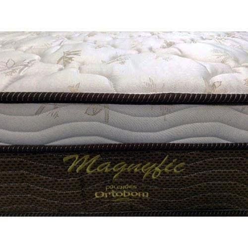O colchão modelo Magnyfic vai encher seu quarto com muito conforto. Ele conta com estrutura em molas ensacadas uma a uma, dando maior estabilidade ao corpo e tornando sua noite de sono muito mais confortável, qualidade e segurança que só a Ortobom pode oferecer. Ainda dispõe de revestimento em tecido Jacquad Ecobambu e 100% poliéster antiderrapante, conferindo toque macio. Para aumentar a maciez e o conforto, possui Ortopillow, camada extra de espuma D28 selada 100% poliuretano. Além disso, conta com respiros laterais cromados que oferecem melhor ventilação interna aumentando a durabilidade do colchão. E para completar, suporta até 100 kg por pessoa.