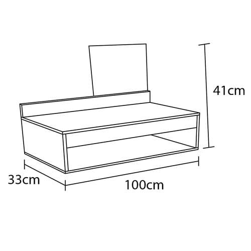 Características Gerais: - Fabricada em MDP 15 mm - Acabamento em Pintura UV - 1 Porta Basculante - 1 Porta de bater - Abertura da porta com pistão à gás - Compartimento principal com nichos organizacionais - Espelho interno retangular