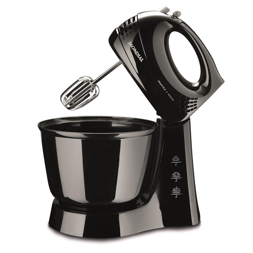 Batedeira - 3 Velocidades + Pulsar, Tigela de 3,6L, 1 par de batedores em aço cromado.
