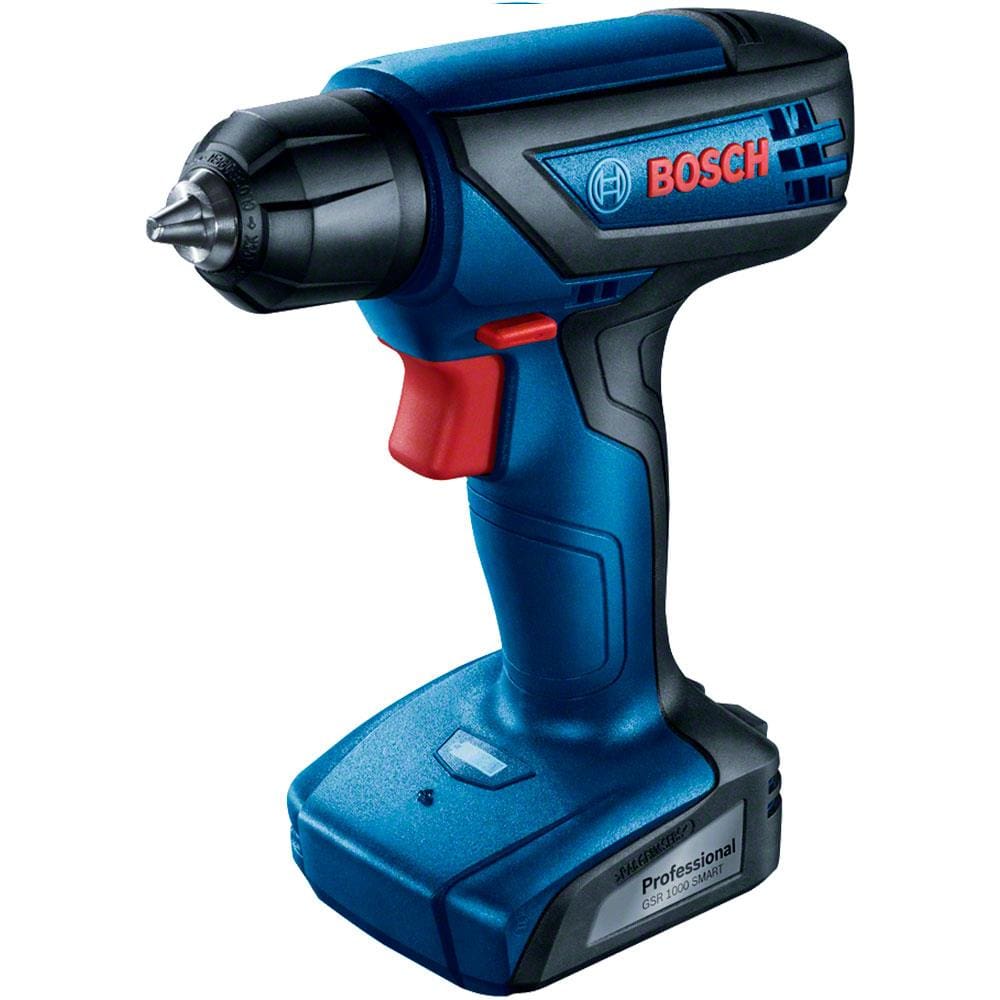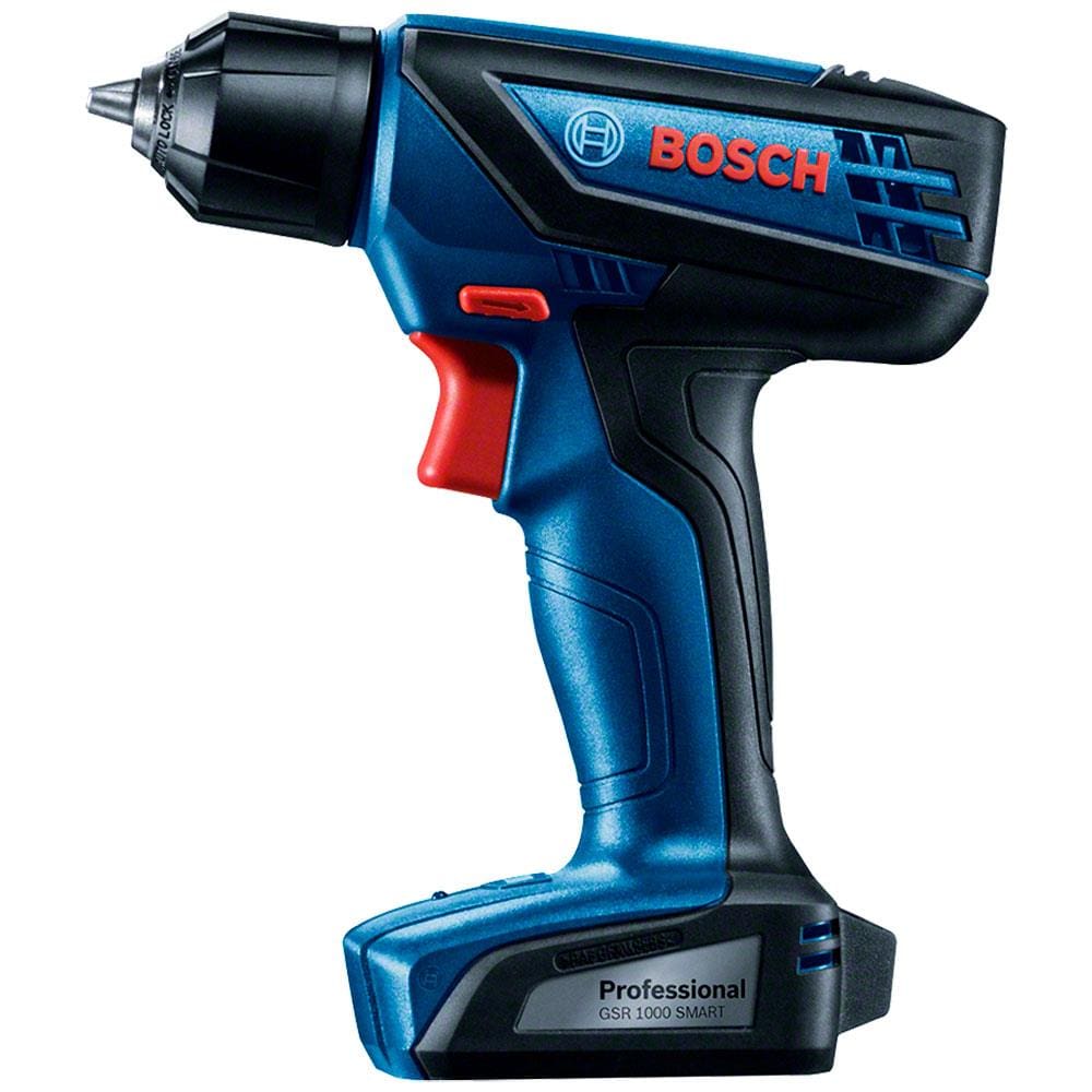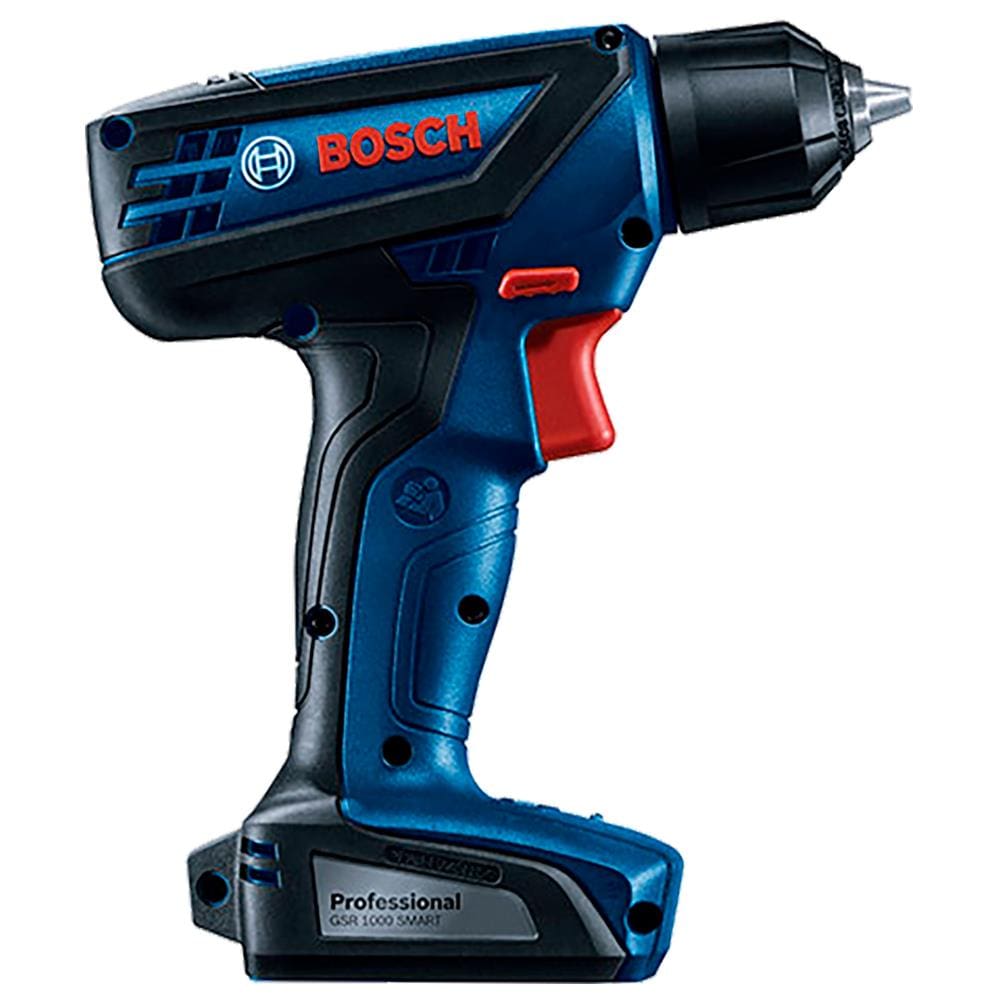 Parafusadeira e Furadeira à Bateria Bosch GSR 1000 Smart, 12V, Carregador Bivolt, Kit de Acessórios com Maleta Plástica
