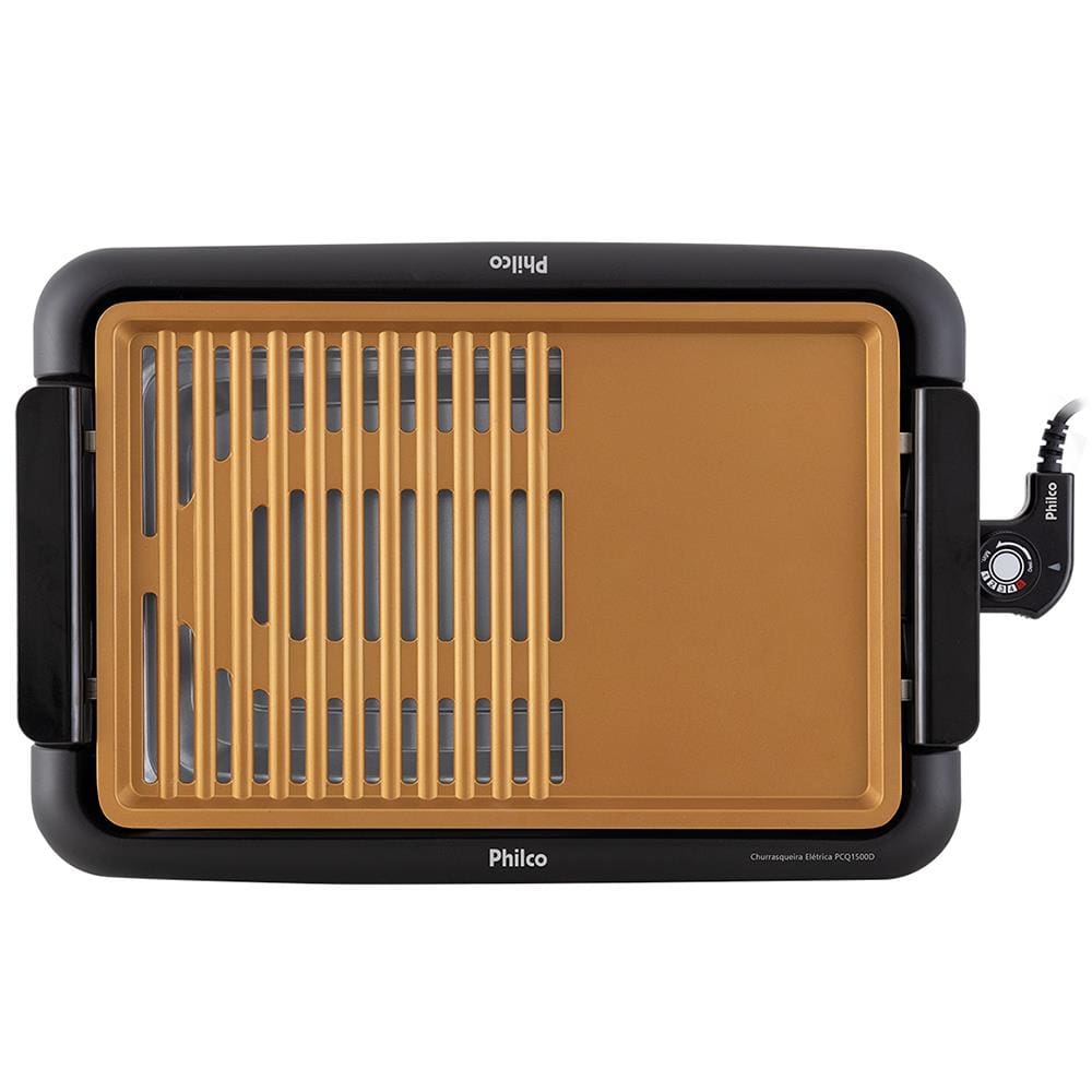 Churrasqueira Elétrica Philco PCQ1500D com Revestimento Antiaderente e 1500W - Dourado/Preto