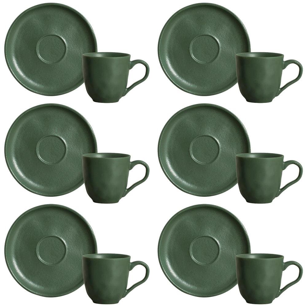 Conjunto com 6 Xícaras e Pires para Café Porto Brasil Bio Leaf em Stoneware Verde - 120 ml
