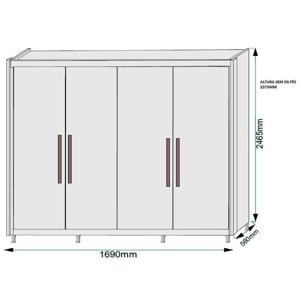 Observações: Item composto APENAS pelo Guarda-Roupa Europa Palermo com 169 cm de Largura, 4 Portas e 3 Gavetas.
