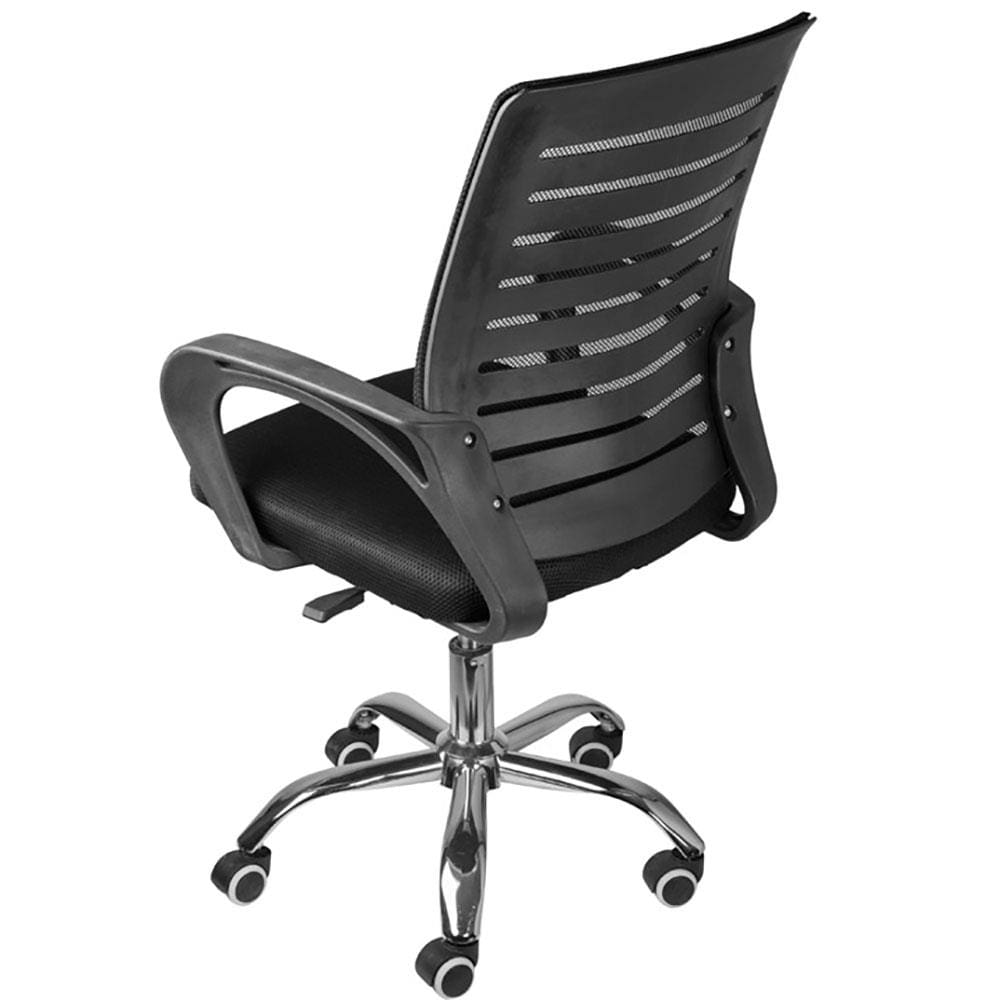 E mais, a sua base é giratória e conta com encaixe metalizado. Para garantir maior resistência, ela ainda dispõe de rodízios em PU, o que possibilita maior durabilidade, evita riscar o chão e permite o deslocamento com menos esforço.