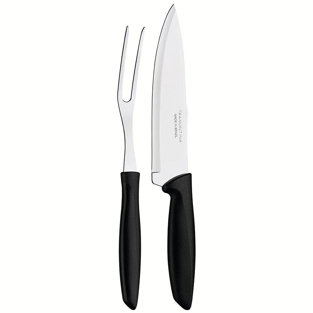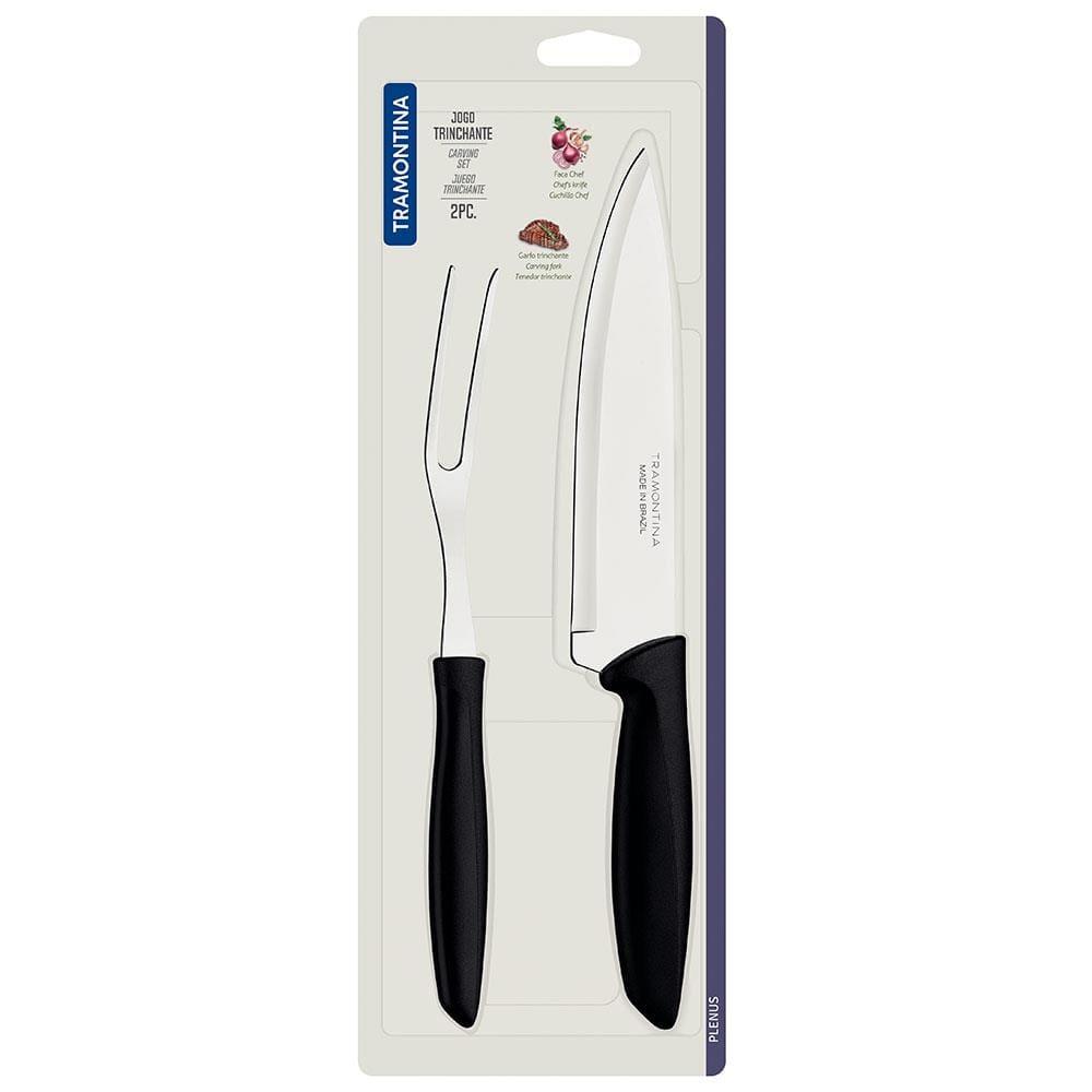 Conjunto Faca Chef e Garfo Trinchante Tramontina Plenus Preto - 2 Peças