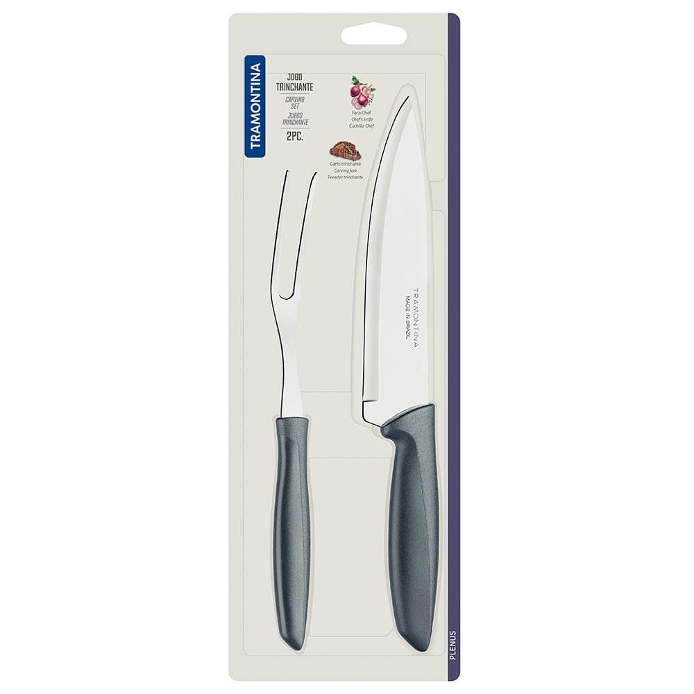 Conjunto Faca Chef e Garfo Trinchante Tramontina Plenus Cinza - 2 Peças