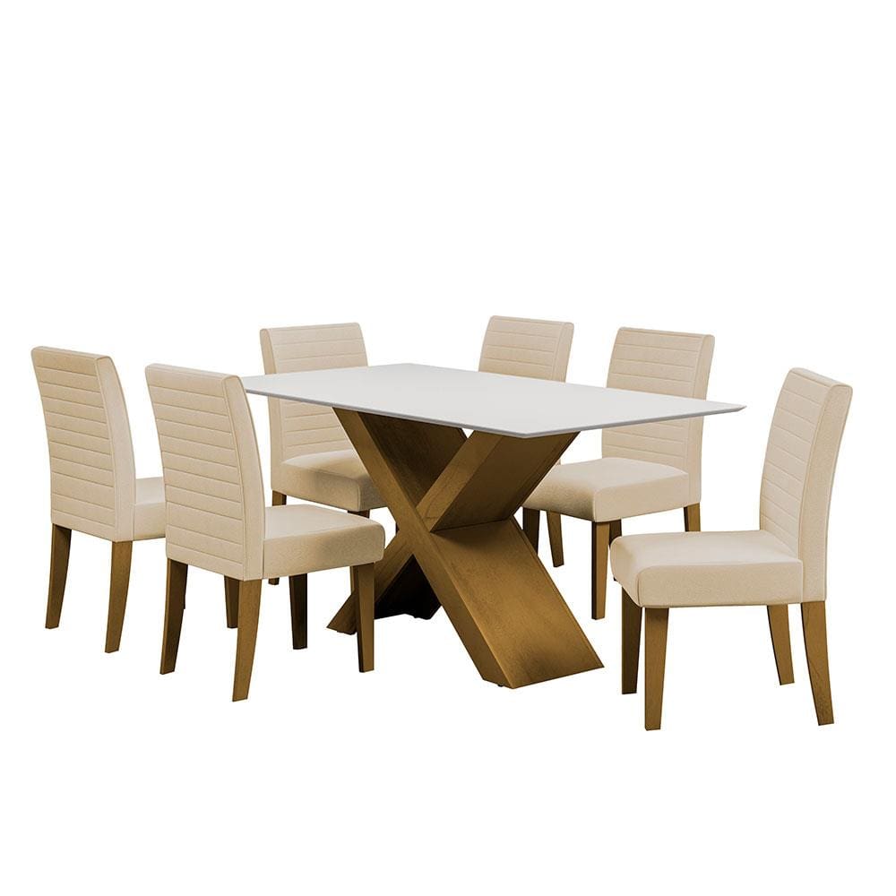 Mesa de Jantar Retangular Dobuê Creta Light 160x90cm com 6 Cadeiras Estofadas Revestidas em Tecido Veloplus