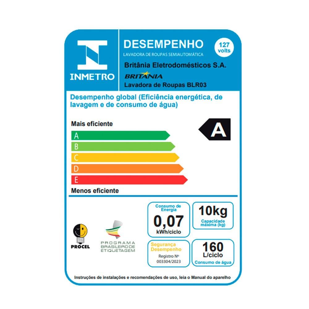 Conteúdo da embalagem: -Tanquinho de Lavar Roupa Britânia 10kg BLR03 Semiautomático - Branco.
