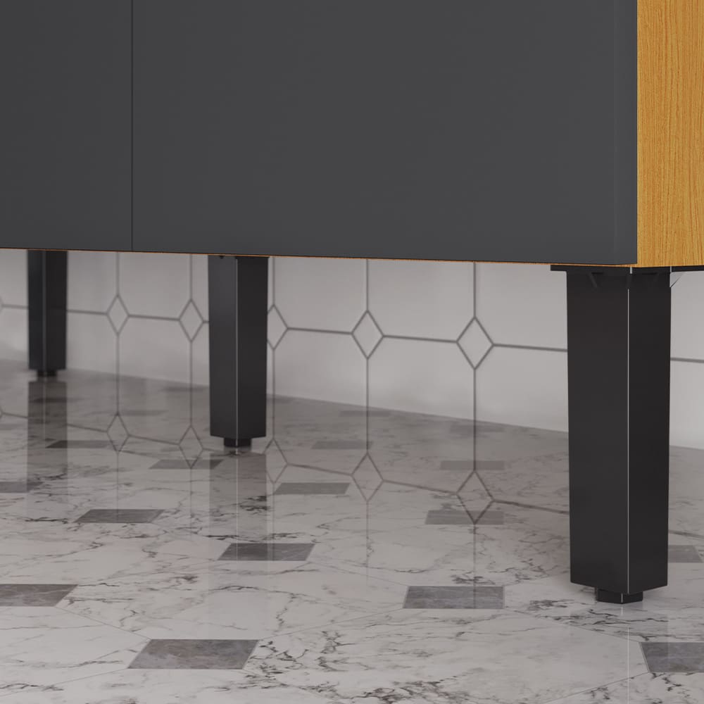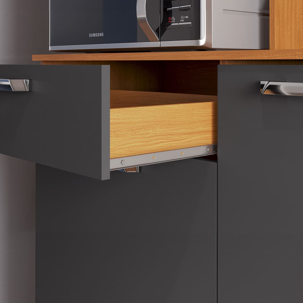 Produzido com material de alta qualidade, o Armário apresenta estrutura em MDP para assegurar maior durabilidade e resistência, acabamento em pintura UV, puxadores externos em plástico, pés altos, sapatas com regulagem de altura e gaveta com corrediças metálicas, que deslizam suavemente.
