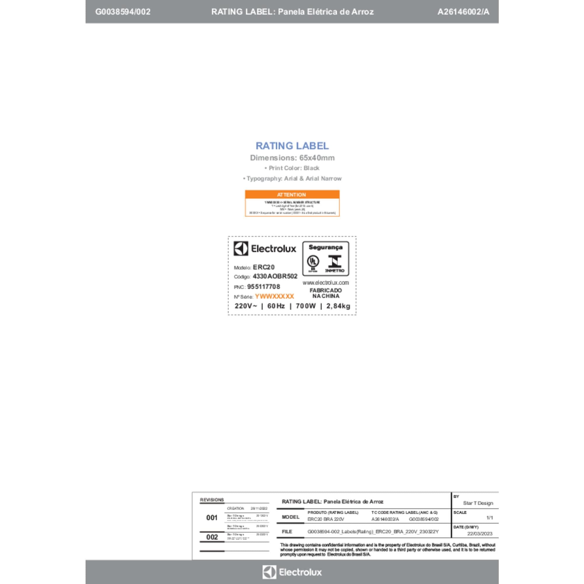 Conteúdo da Embalagem: -Panela Elétrica de Arroz Electrolux Efficient ERC20 por Rita Lobo com Trava de Segurança 3,5L Inox