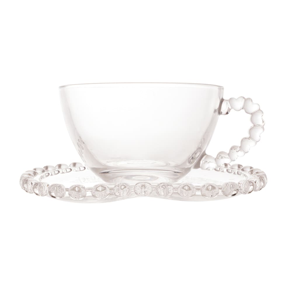 Xícara de Chá de Cristal com Pires Lyor Coração - 170ml