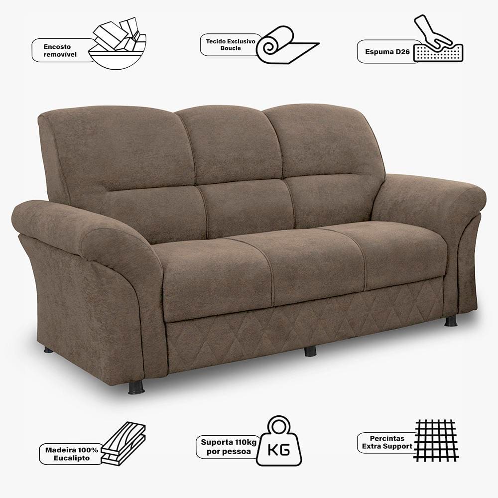 Conteúdo da Embalagem: -Sofá 3 Lugares Cama inBox Mourato com 187cm de Largura e Revestido em Bouclé;