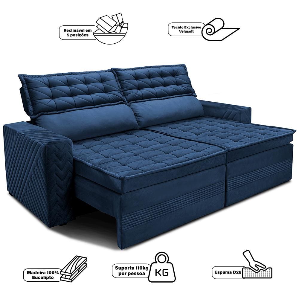 Conteúdo da Embalagem: -Sofá 4 Lugares Cama inBox Cielo com Assento Retrátil, Encosto Reclinável em Suede Velusoft e 230cm de Largura;