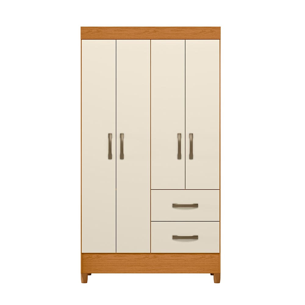 Guarda-Roupa Solteiro Palumóveis Mobi com Cabideiro, 4 Portas de Bater e 2 Gavetas, Cinamomo e Off White - 98cm de Largura