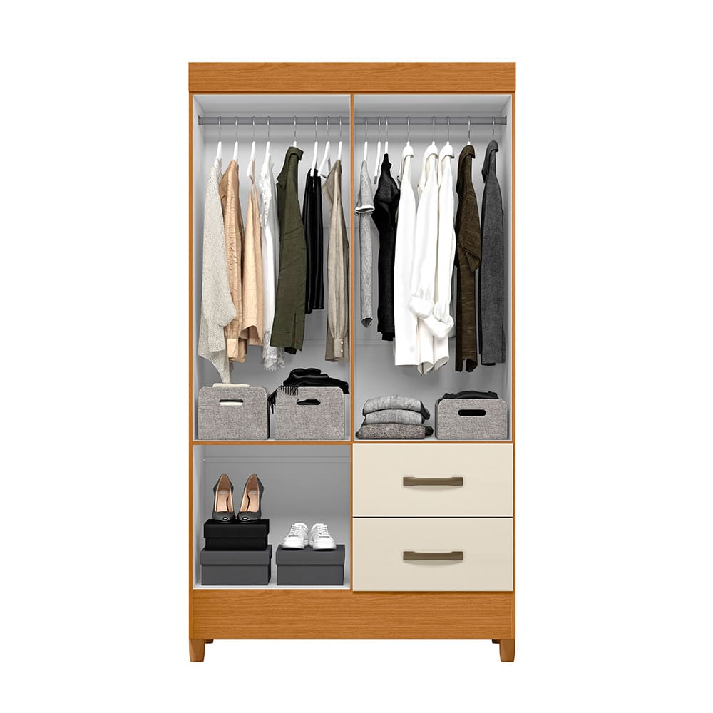 Construído em MDP de alta qualidade com acabamento em pintura UV, esse roupeiro garante resistência e longa vida útil, ideal para quem busca uma solução prática, versátil e acessível, sem abrir mão da beleza e durabilidade. Sua tonalidade em Cinamomo e Off White, aliado as linhas clean, proporcionam um visual moderno e elegante que se adapta a diferentes estilos de decoração.