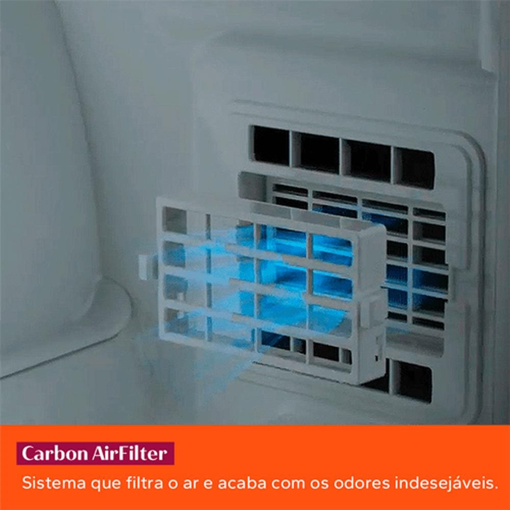 Com o exclusivo Carbon AirFilter, a Brastemp BRO85AB elimina odores indesejados, garantindo um ambiente interno sempre fresco e agradável. Essa tecnologia filtra continuamente o ar da geladeira, acabando com cheiros persistentes como os de peixe ou alimentos armazenados por mais tempo. Ideal para manter a geladeira sempre com aroma neutro, preservando o sabor e a qualidade dos alimentos.