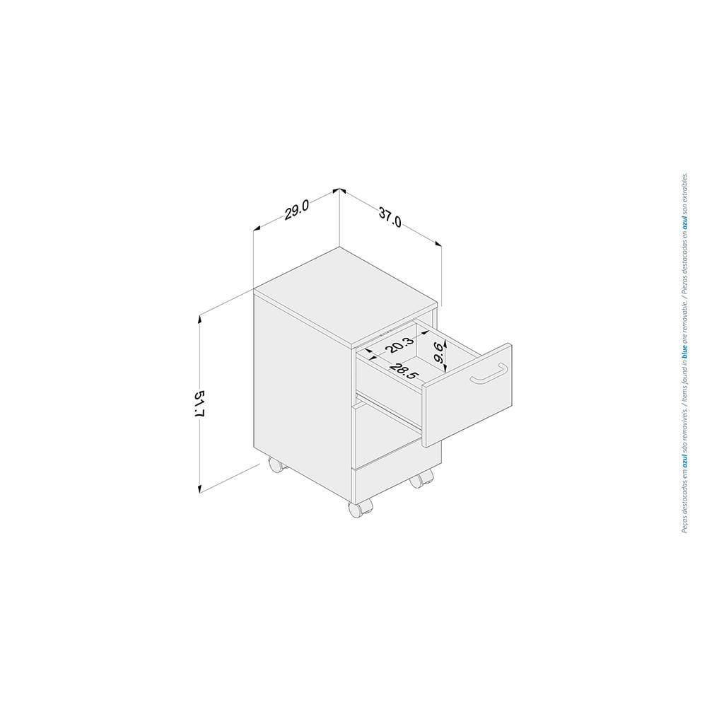 Características Gerais: - 2 gavetas - Estrutura em MDP - Pintura UV - Modelo vertical compacto - Pés com rodízios - Peso: 10,66 kg - Dimensões (A x L x P): 51,7 x 29 x 37 cm