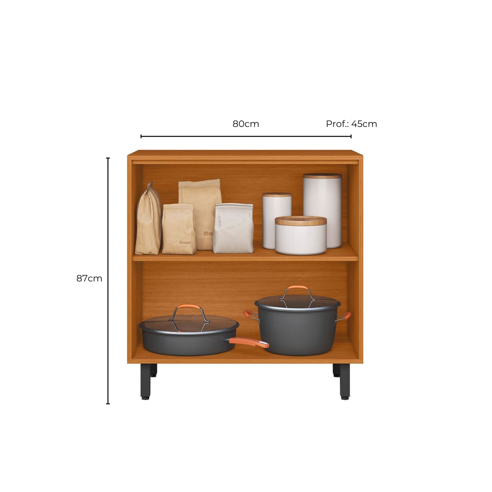 Cozinhas modernas e bem-organizadas precisam ter o Balcão 80cm com Tampo Ravena Poliman. Com 2 portas de bater e prateleira interna removível, oferece excelente aproveitamento de espaço, permitindo acomodar desde pequenos utensílios até objetos maiores com eficiência.