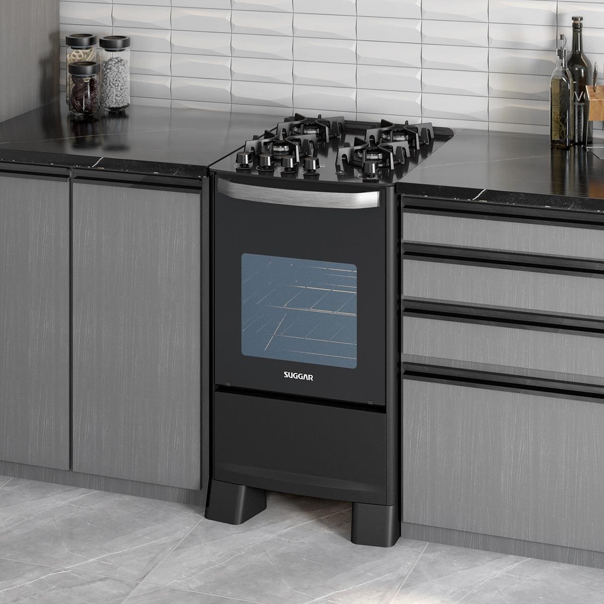 Fogão Suggar Master Grill FGVMTG412PT 4 Bocas Preto Vidro Temperado Superautomático Forno 56L